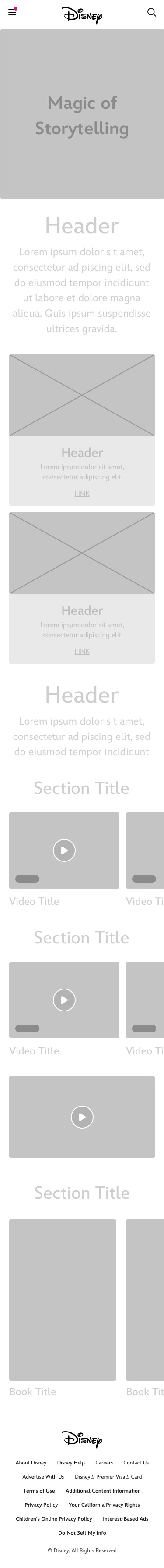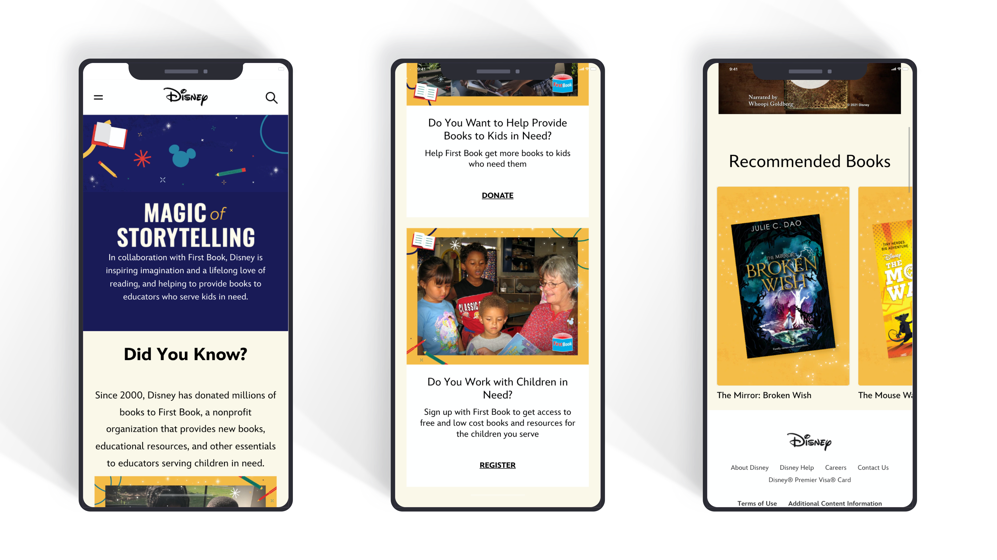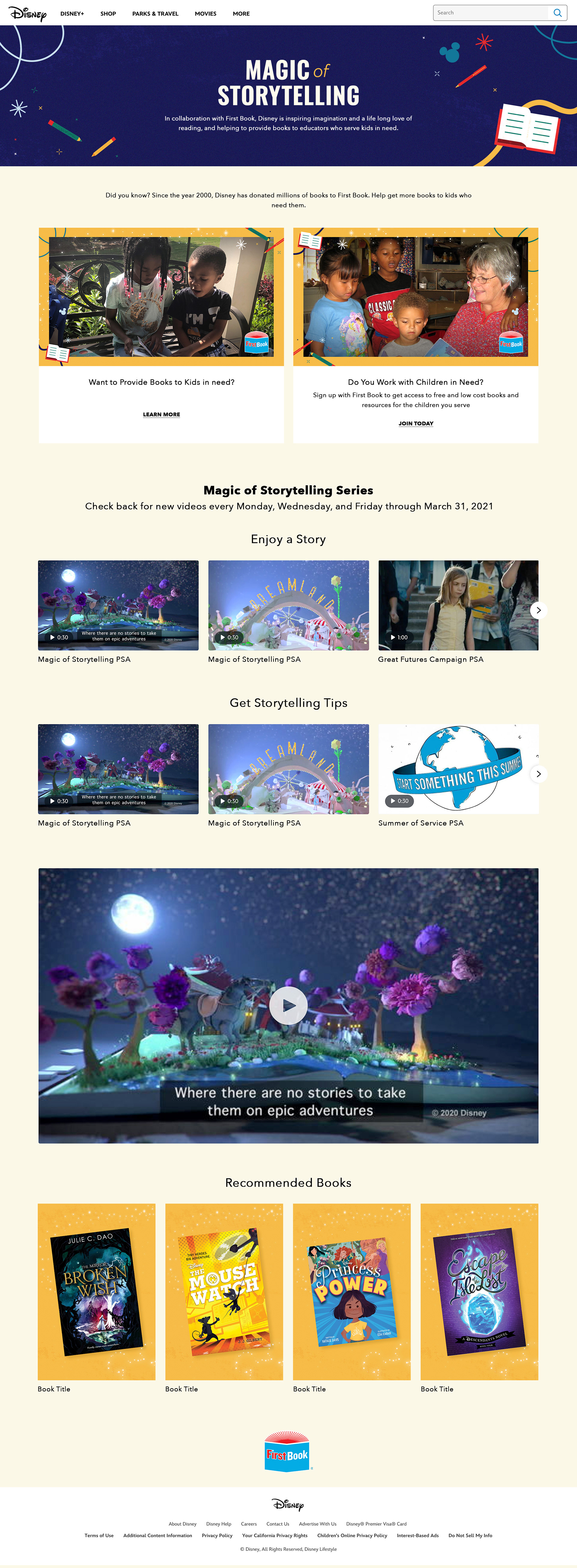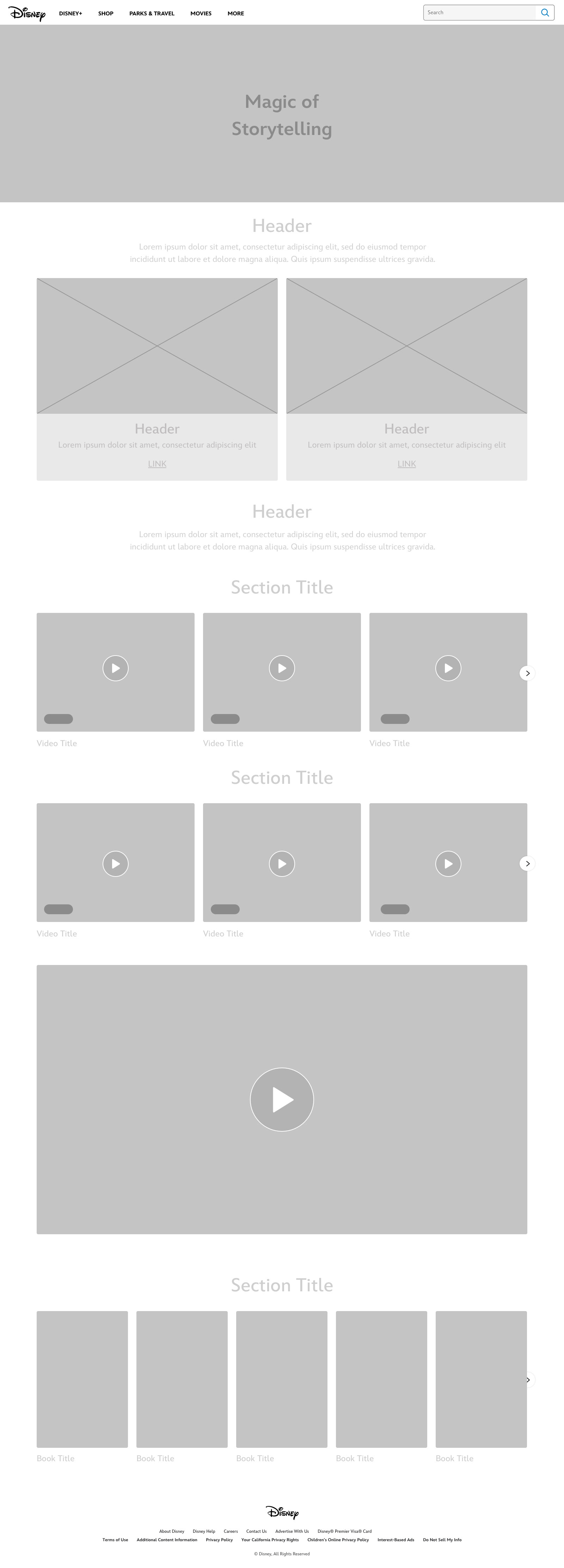 Wireframe and Microsite creation for a Disney Partner page that highlights the importance of reading for kids.