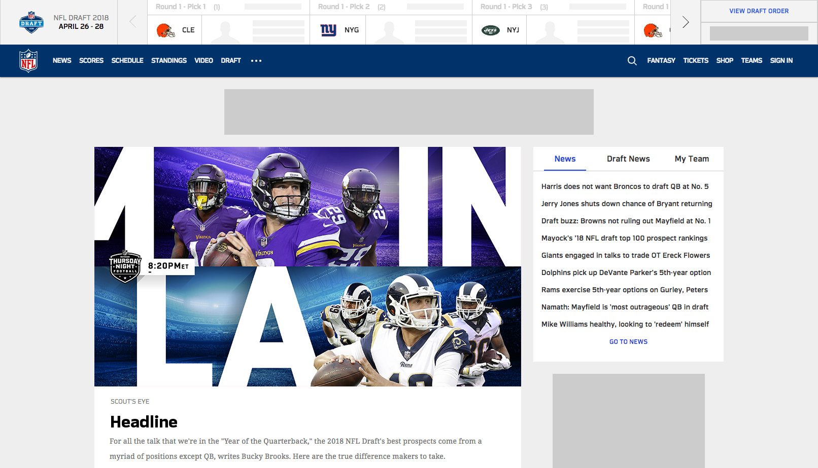 Designed a matchup, quote, scoreboard, and mobile wallpaper to go across .comĀ and social. Templates were created for every Thursday Night matchup to allow internal departments to easily swap out players they wanted to feature. Note, some text is FPO.